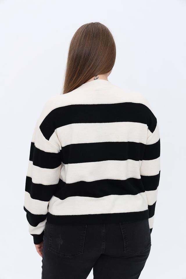 Этот стильный пуловер от Marc Aurel станет отличным дополнением к вашему гардеробу. Пуловер выполнен в классическом дизайне с горизонтальными полосами чёрного и белого цвета, что делает его универсальным и легко сочетаемым с различными элементами одежды.