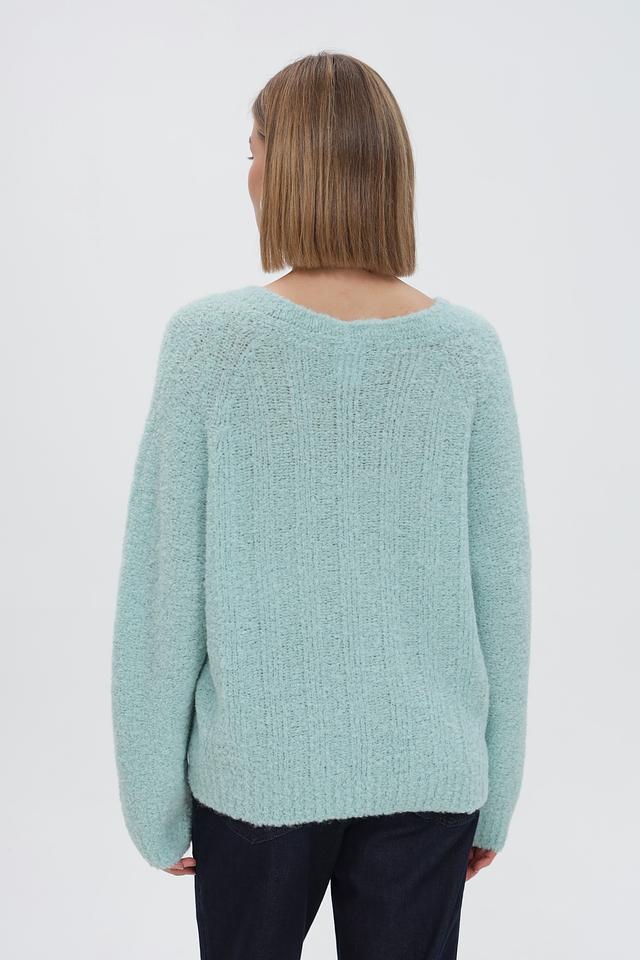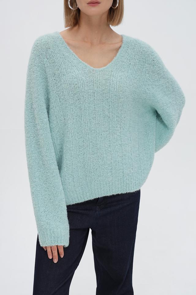 Мятный пуловер Marc Cain Sports свободного кроя, выполнен из мягкой смеси шерсти и альпаки. Модель с V-образным вырезом и объёмными рукавами обеспечит комфорт и стильный образ. Состав: 38% акрил, 13% шерсть, 34% альпака, 15% полиамид. Состав: акрил 38%, альпака 34%, полиамид 15%, шерсть 13%