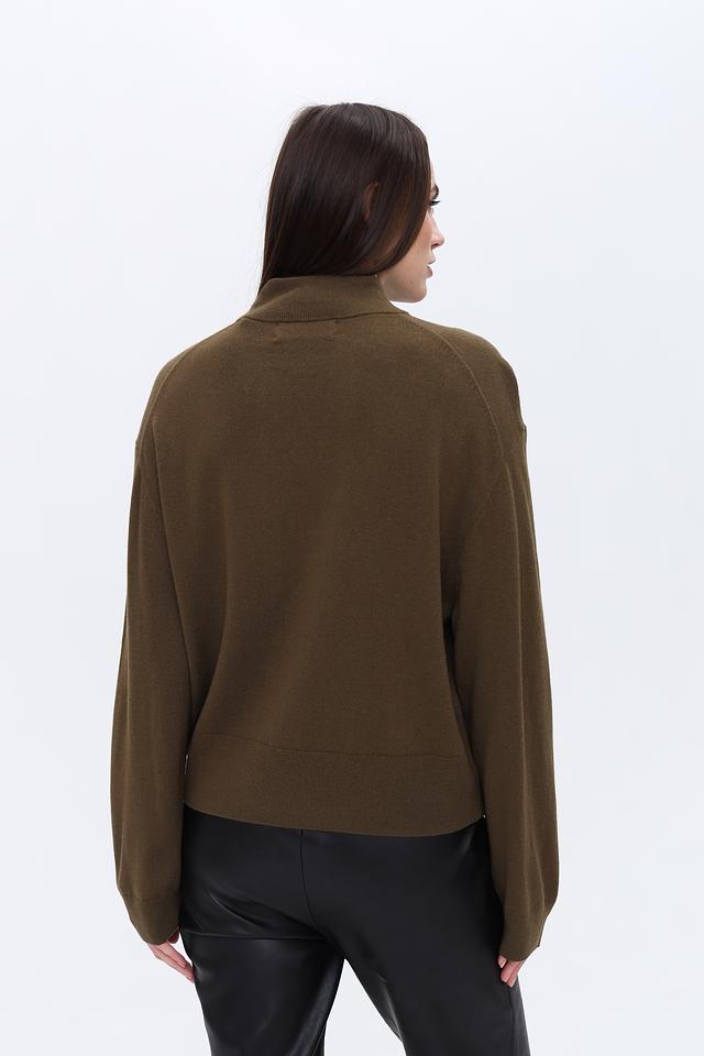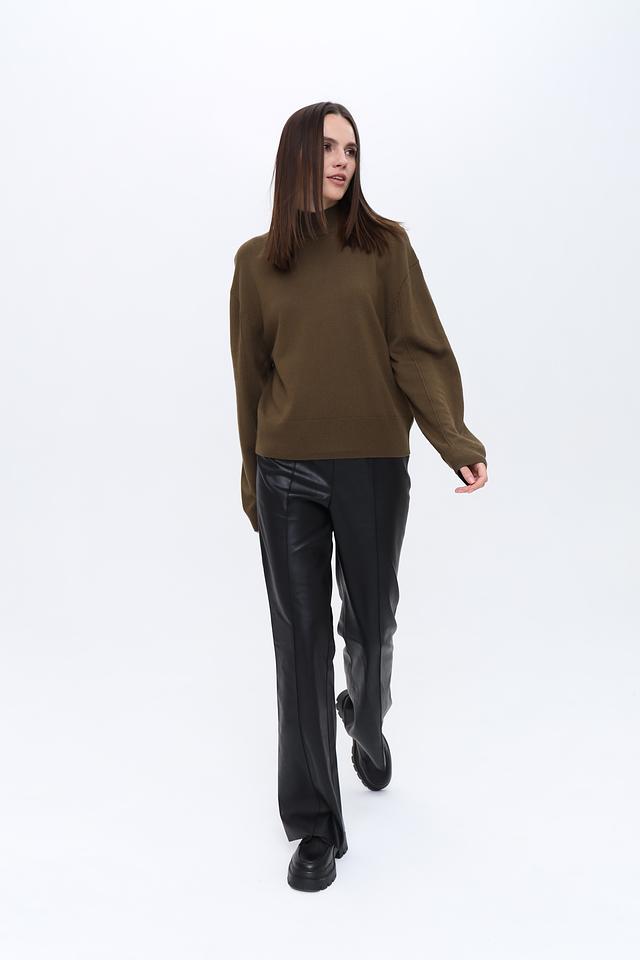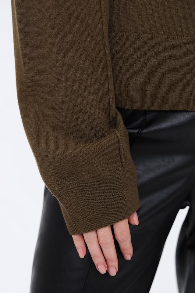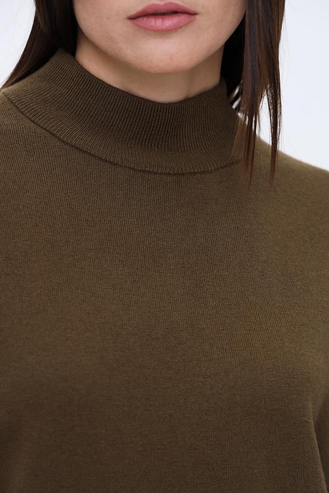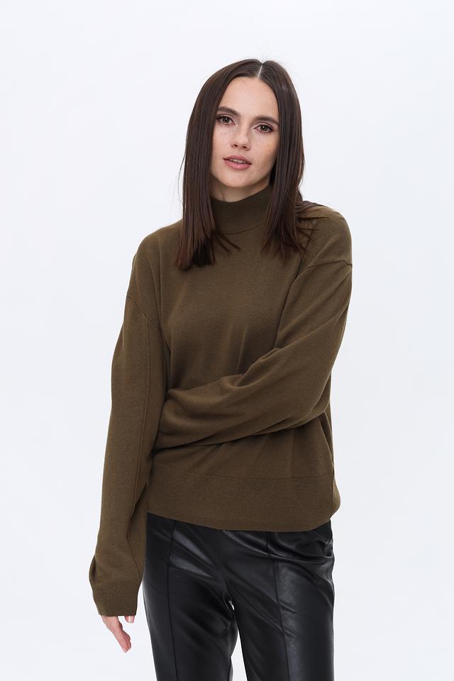 Пуловер выполнен в спокойном оливковом цвете, который легко сочетается с другими элементами гардероба. Текстура трикотажа приятна на ощупь и не требует особого ухода.