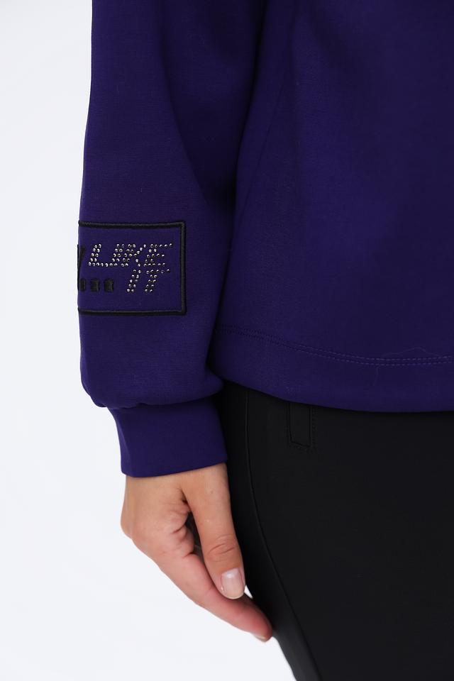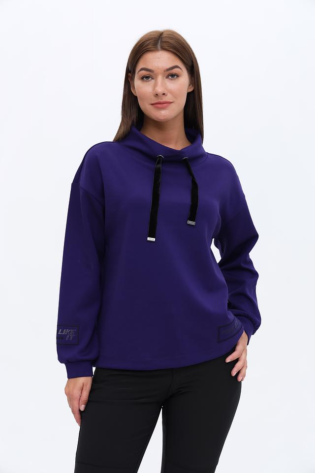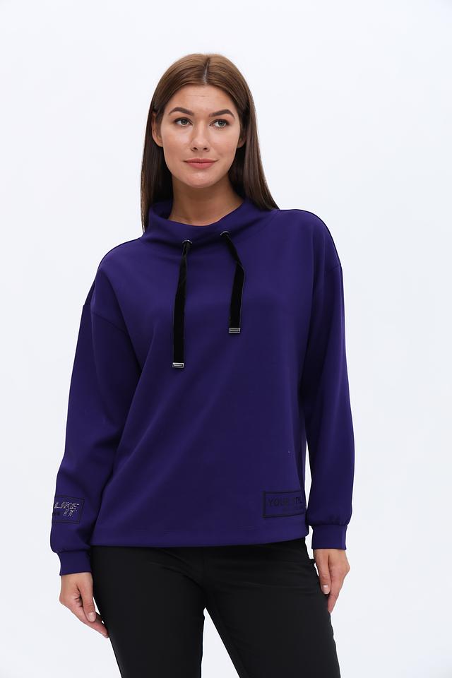 Женский пуловер Monari насыщенного фиолетового цвета с удобным капюшоном на шнурках. Модель свободного кроя с декоративными нашивками добавит образу непринужденности и стиля. Состав: полиэстер 55%, вискоза 38%, эластан 7%