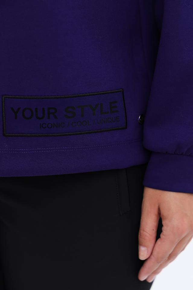 Пуловер имеет насыщенный фиолетовый цвет и свободный крой, который не сковывает движения. Капюшон со шнурками добавляет функциональности и позволяет регулировать степень защиты от ветра и холода. Декоративные нашивки с логотипом бренда придают изделию индивидуальность и подчеркивают его принадлежность к премиальному сегменту.