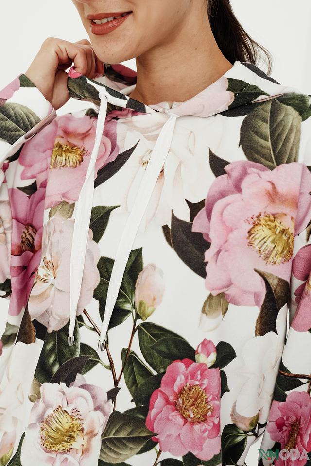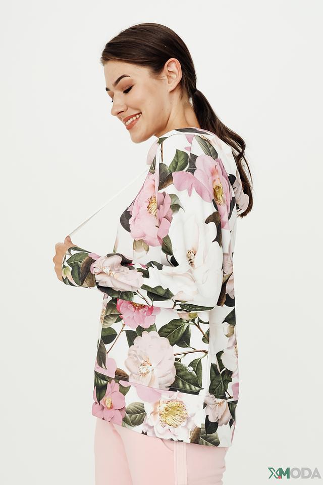 Женский пуловер Monari белого цвета с ярким цветочным принтом – стильное и комфортное решение для повседневного образа. Модель с капюшоном и длинными рукавами станет отличным дополнением к вашему гардеробу. Состав: хлопок 80%, полиэстер 20%
