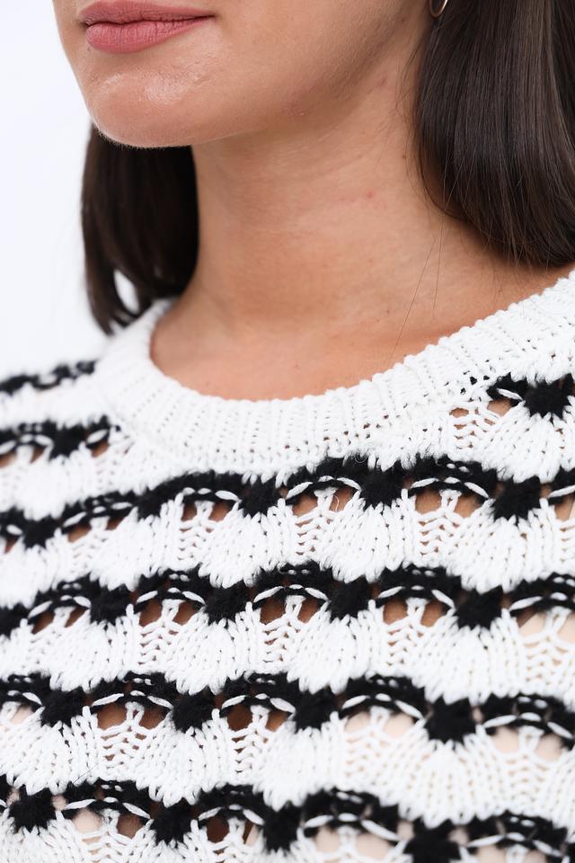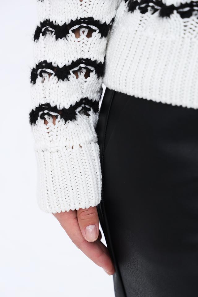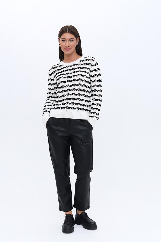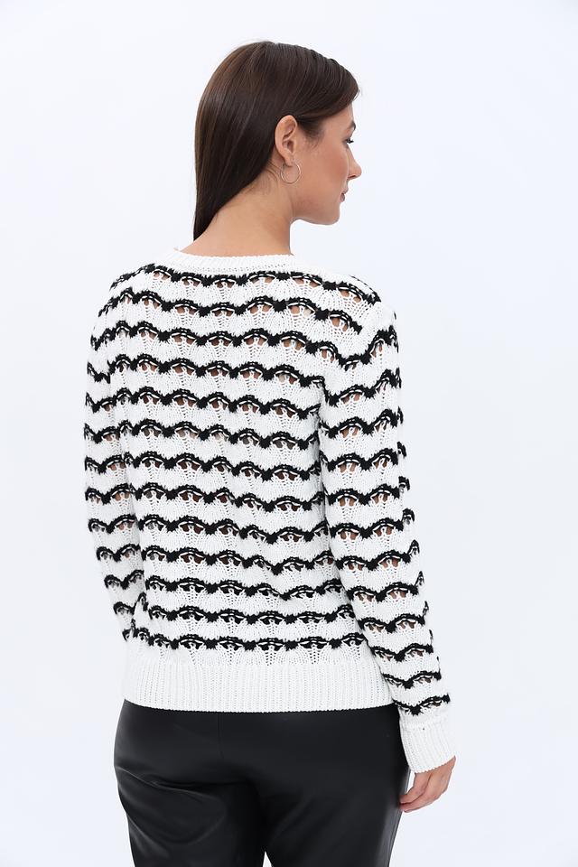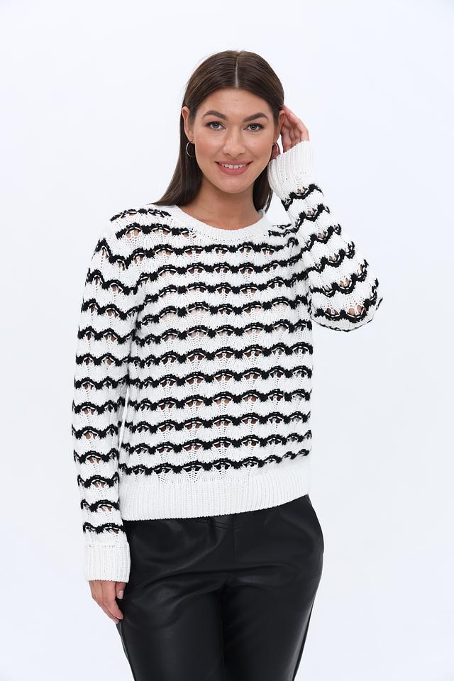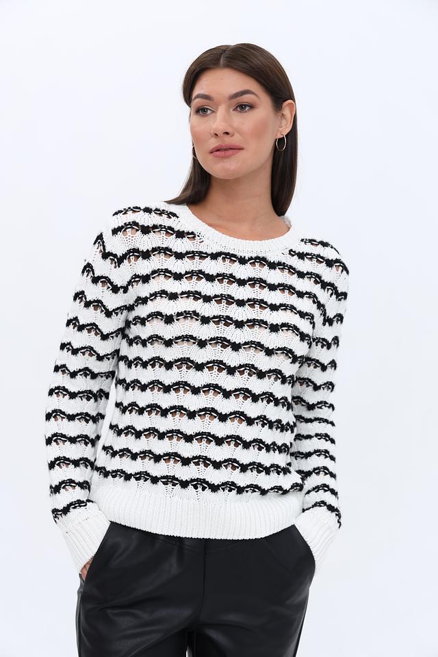 Женский пуловер More and More белого цвета с чёрной полосатой фактурой станет стильным дополнением к вашему гардеробу. Модель выполнена из мягкого и приятного к телу сочетания хлопка и полиакрила, обеспечивая комфорт в носке. Состав: хлопок 50%, полиакрил 50%