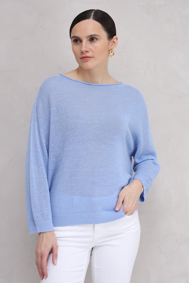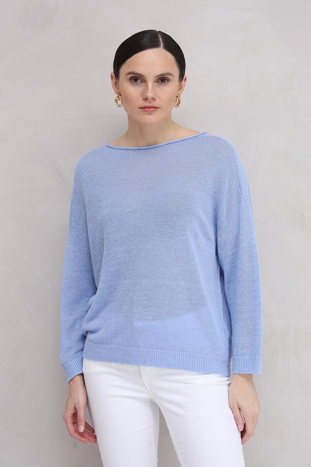 Нежный голубой цвет пуловера легко сочетается с различными элементами одежды, позволяя создавать разнообразные стильные образы. Этот пуловер идеально подойдет для повседневной носки, прогулок и встреч с друзьями. Состав: 100% лен.