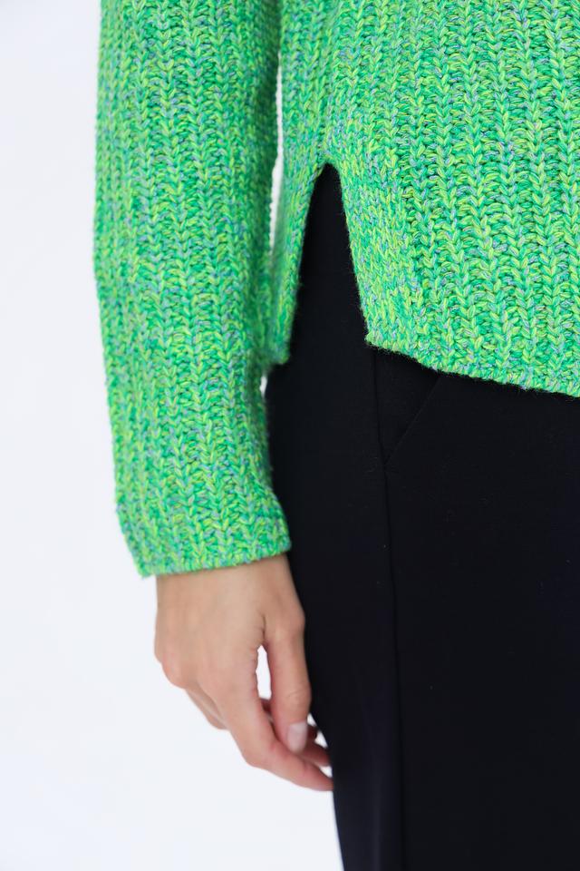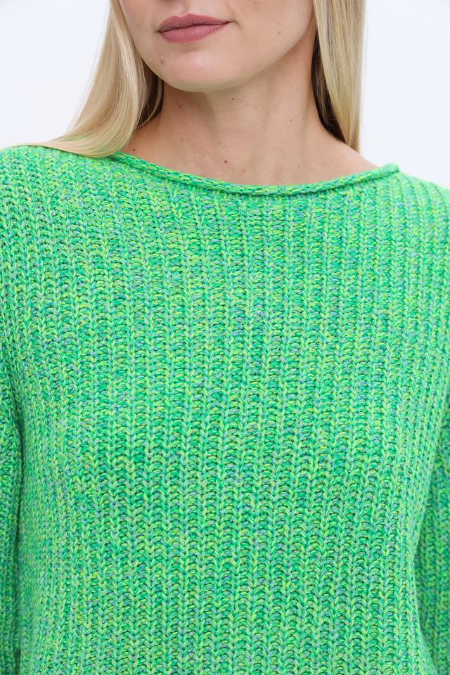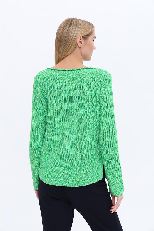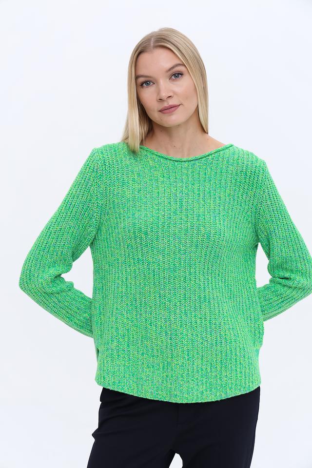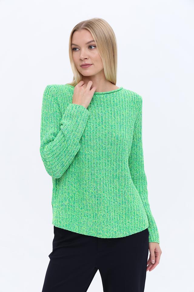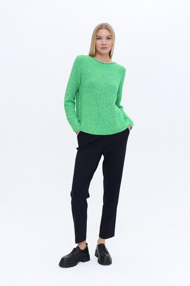 Этот стильный пуловер от бренда Oui выполнен в ярком зелёном цвете с интересным меланжевым эффектом. Модель имеет классический крой с круглым вырезом горловины и длинными рукавами.