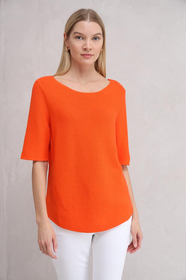 Оранжевый пуловер от Oui с рукавом 3/4 и округлым вырезом. Изготовлен из 100% хлопка, что обеспечивает комфорт и воздухопроницаемость. Стильный и универсальный выбор для повседневного гардероба. Состав: хлопок 100%