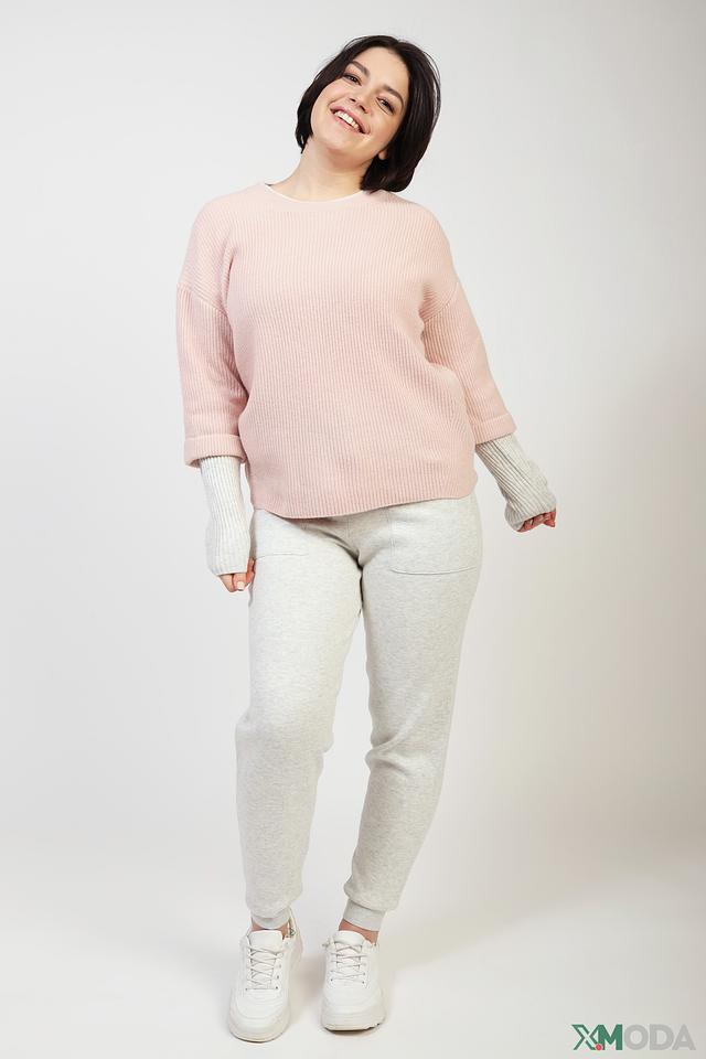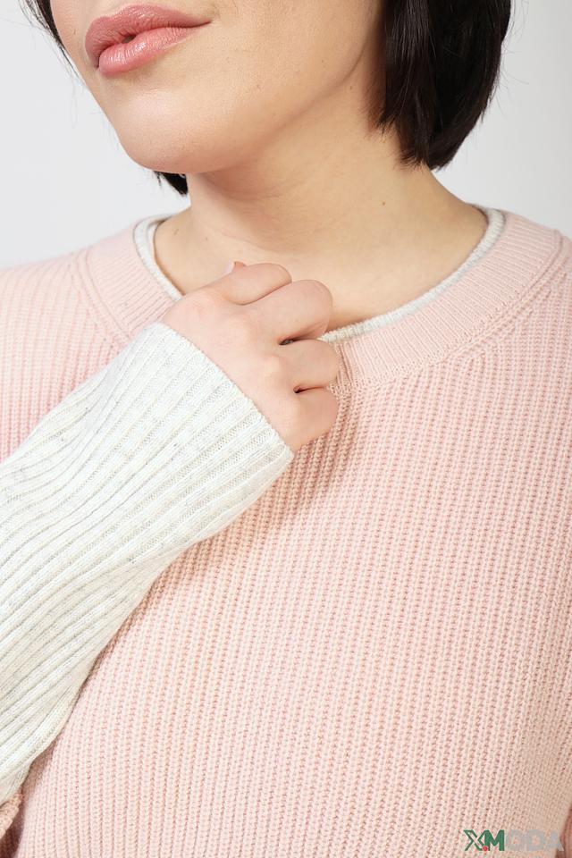 Женский пуловер Oui нежно-розового цвета с рукавами контрастного серого цвета. Модель выполнена из мягкого трикотажа с рельефной текстурой и имеет свободный крой, что обеспечивает комфорт и удобство в носке. Состав: шерсть 50%, полиамид 30%, модал 20%