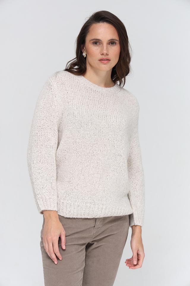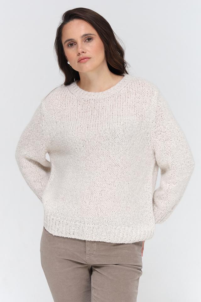 Бежевый пуловер от Oui выполнен из мягкой пряжи с добавлением мохера. Модель свободного кроя с округлым вырезом горловины и крупной вязкой станет отличным дополнением к вашему гардеробу. Состав: полиакрил 58%, шерсть 20%, полиамид 12%, мохер 10%