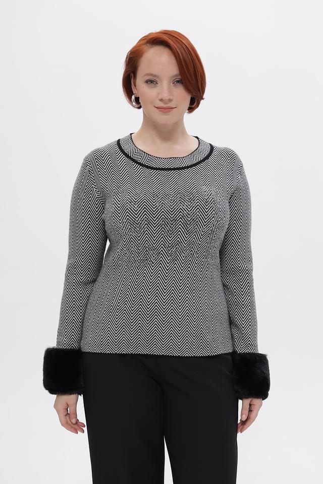 Стильный пуловер Passioni серого цвета с геометрическим узором и эффектными меховыми манжетами. Изготовлен из мягкой вискозы с добавлением полиэстера и полиамида для комфорта и износостойкости. Состав: вискоза 65%, полиамид 20%, полиэстер 15%