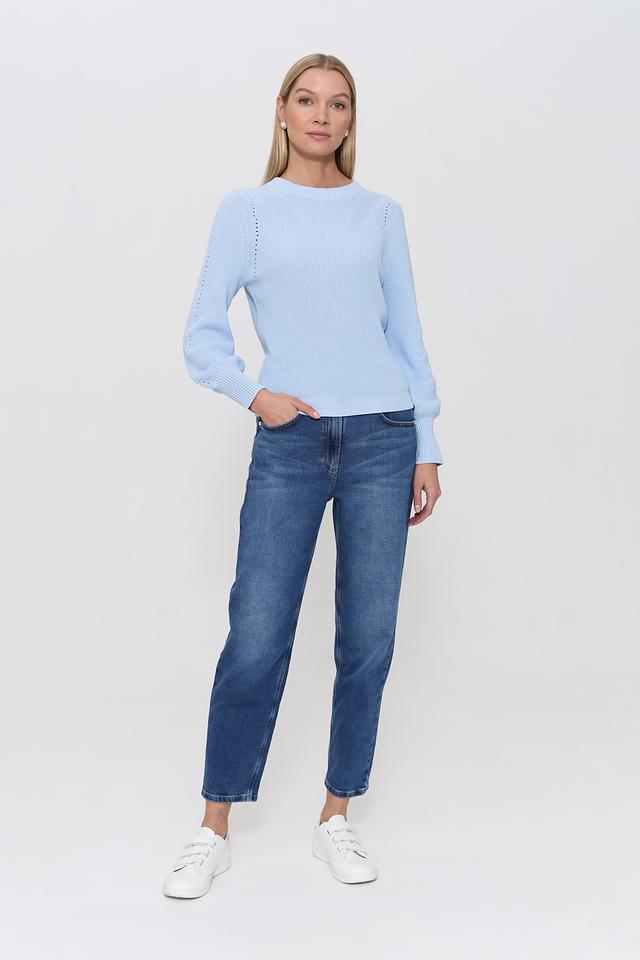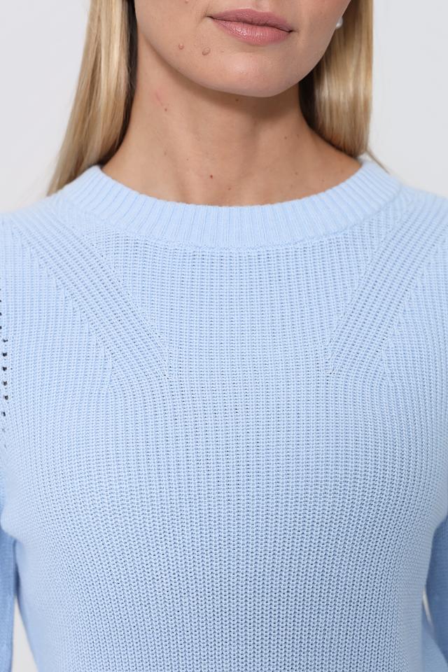 Женский пуловер Pezzo голубого цвета выполнен из мягкого хлопка и украшен ажурным узором на плечах и рукавах. Эта модель станет отличным дополнением к вашему базовому гардеробу. Состав: хлопок 100%