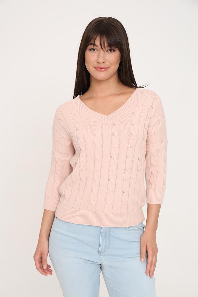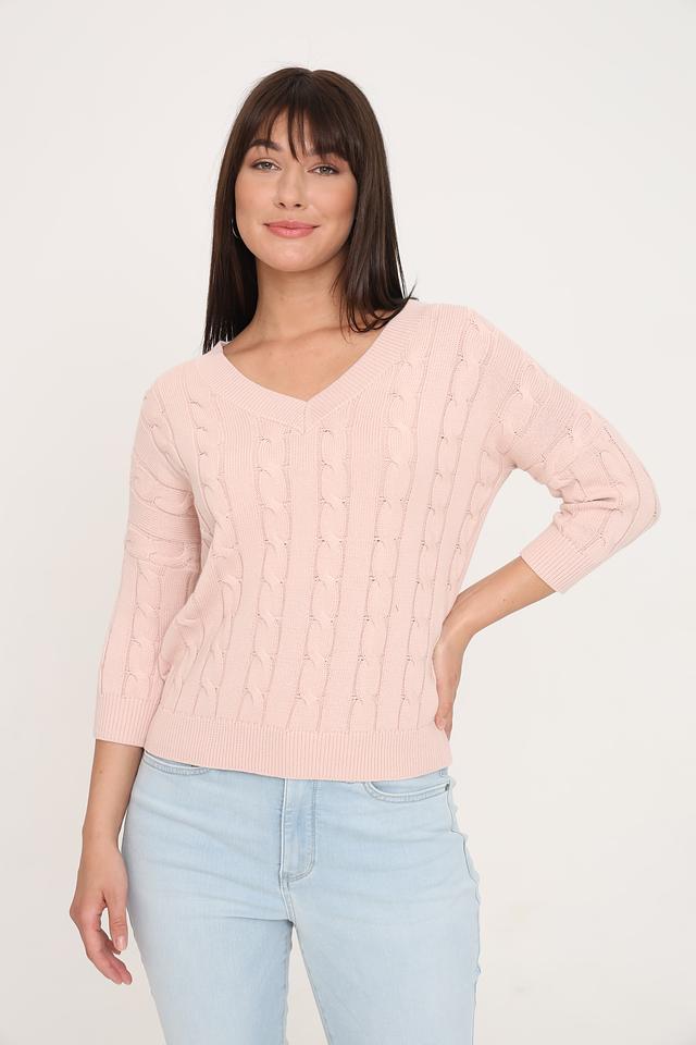Персиковый пуловер Pezzo из 100% хлопка с V-образным вырезом и узором "косы". Этот стильный джемпер станет отличным дополнением к вашему гардеробу, сочетая в себе комфорт и актуальный дизайн. Состав: хлопок 100%