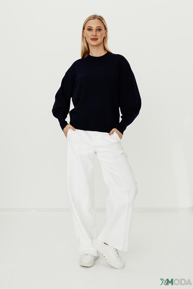 Пуловер имеет классический круглый вырез горловины и свободный крой, который не сковывает движения. Особый акцент сделан на рукавах-фонариках, придающих образу женственность и оригинальность.
