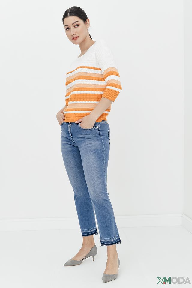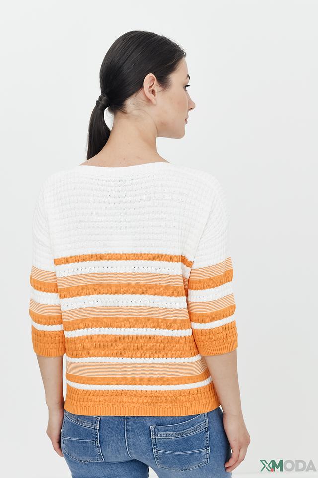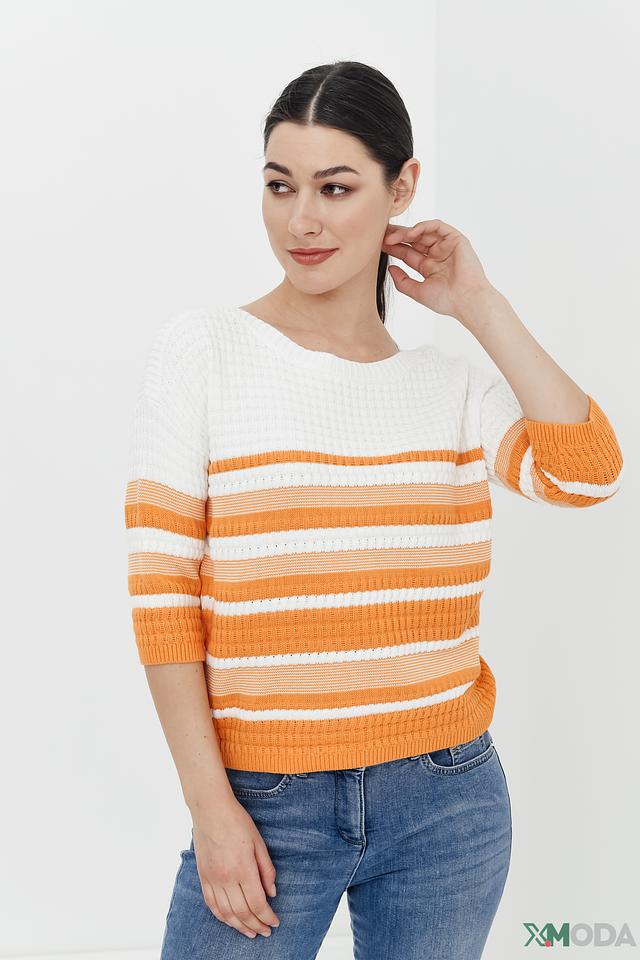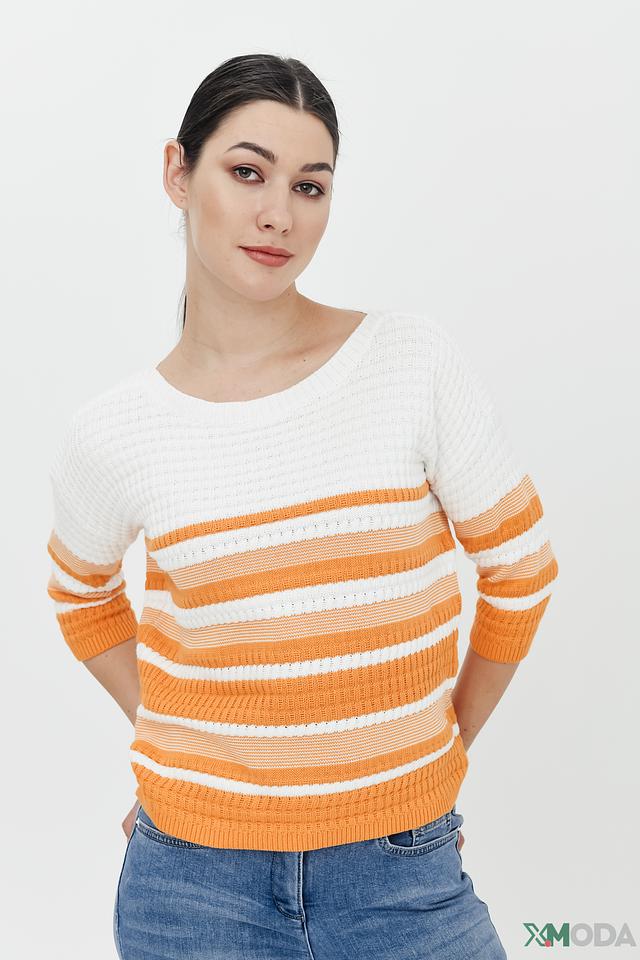 Женский пуловер Pezzo оранжево-белого цвета с короткими рукавами и полосатым узором. Изготовлен из мягкого хлопка, обеспечивающего комфорт в носке. Стильный и удобный выбор для повседневного гардероба. Состав: хлопок 100%