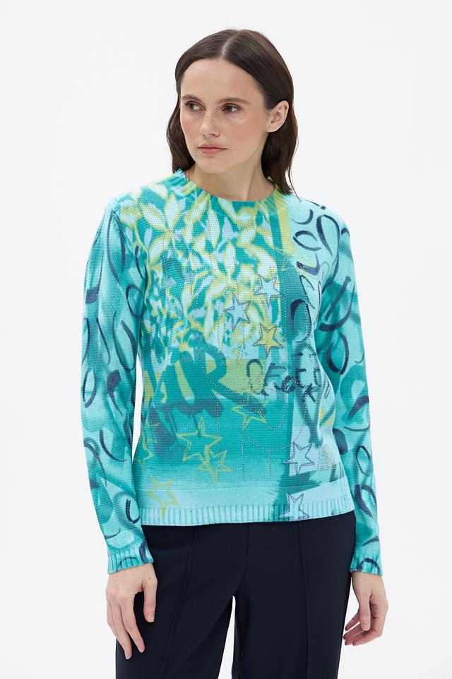 Женский пуловер Rabe collection бирюзового цвета с оригинальным принтом в виде абстрактных узоров и звёзд. Изготовлен из мягкого хлопка, обеспечивающего комфорт в носке. Стильный и удобный выбор для повседневного гардероба. Состав: хлопок 100%