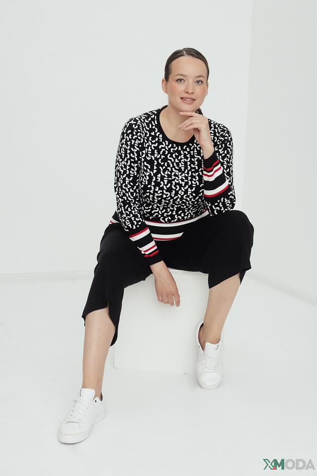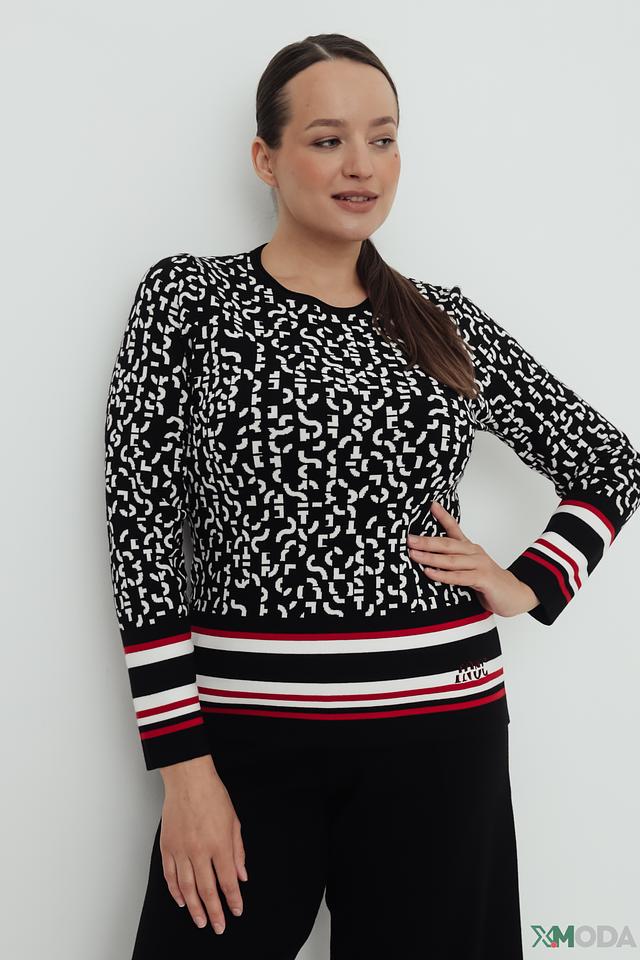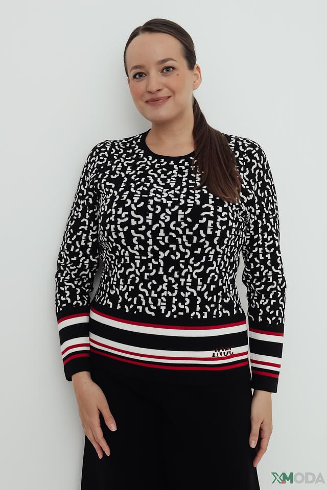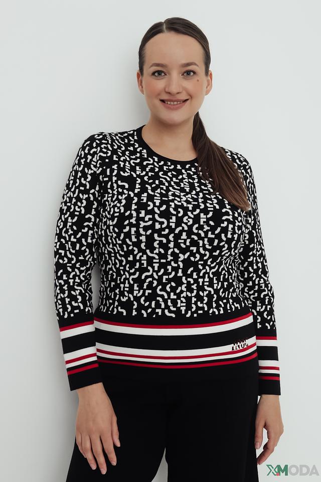Чёрный пуловер от Rabe collection с оригинальным принтом и контрастной отделкой. Модель выполнена из мягкого и приятного к телу сочетания вискозы и полиэстера, обеспечивающего комфорт в носке. Состав: вискоза 72%, полиэстер 28%