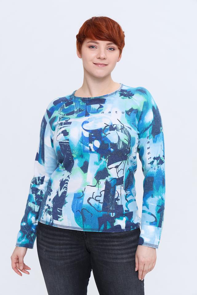 Женский пуловер Rabe collection бирюзового цвета с оригинальным абстрактным принтом. Модель выполнена из мягкой и приятной к телу ткани, обеспечивающей комфорт в носке. Идеально сочетается с джинсами и брюками. Состав: вискоза 50%, полиамид 28%, полиэстер 22%