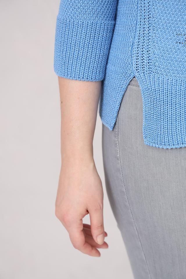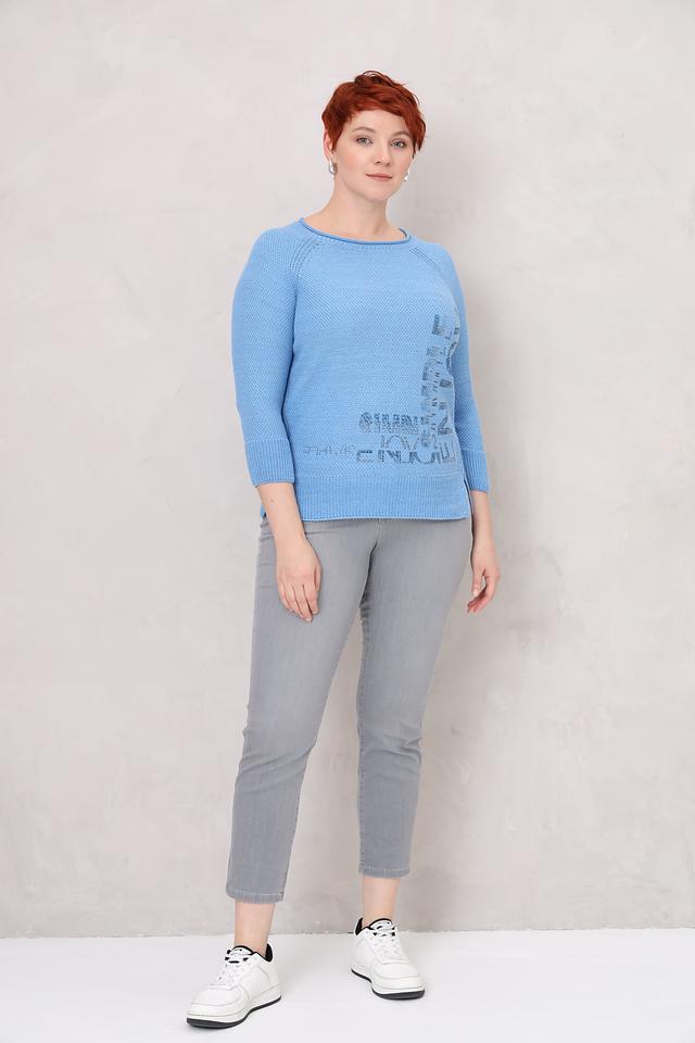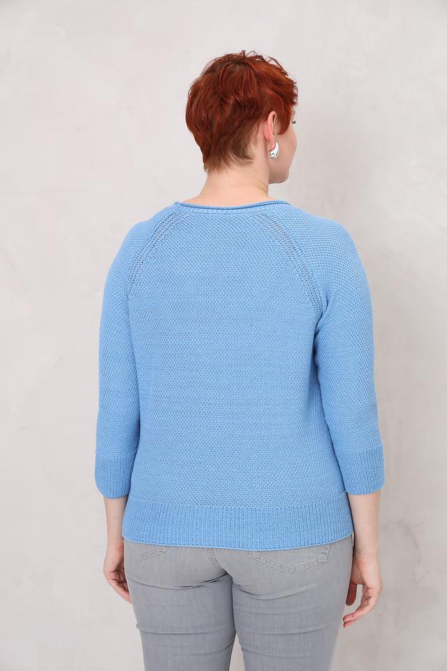 Этот пуловер от Rabe collection выполнен в нежном голубом цвете и станет прекрасным дополнением к вашему гардеробу. Модель имеет удобный прямой крой и округлый вырез горловины.