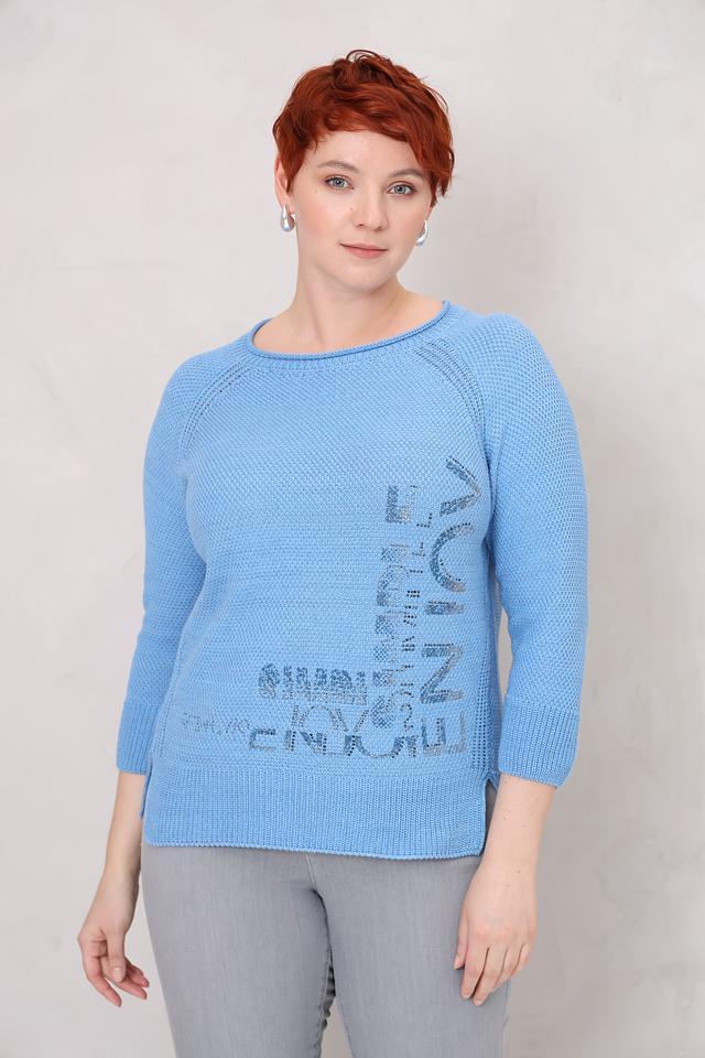 Пуловер украшен оригинальным принтом с надписями, который добавляет образу индивидуальности. Рукава модели – 3/4, что делает ее подходящей для теплой погоды или для ношения поверх другой одежды.