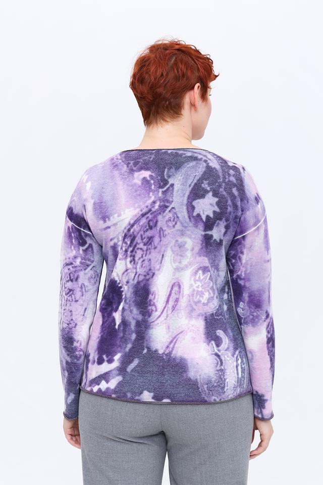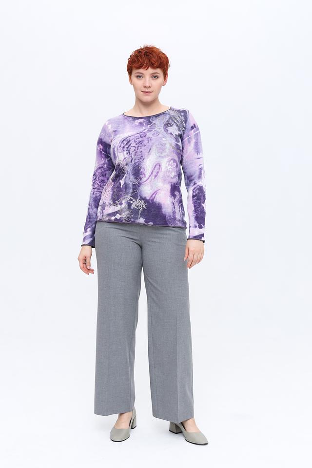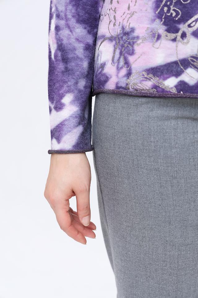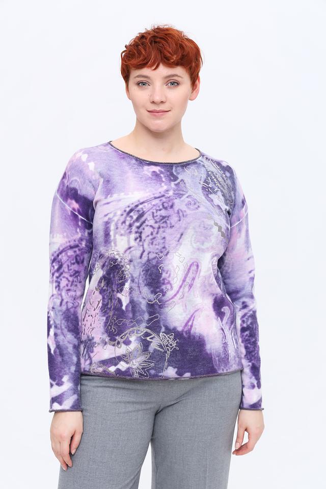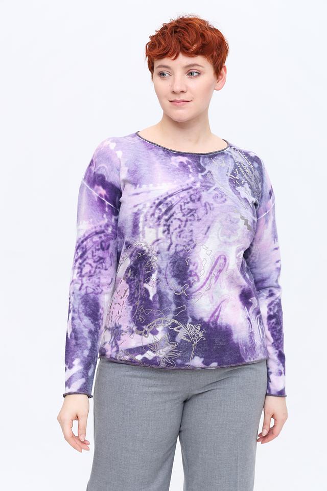 Этот женский пуловер от Rabe collection выполнен в нежном лиловом цвете и украшен эффектным принтом, придающим ему уникальность.
