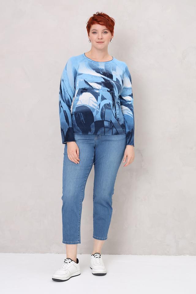 Женский пуловер Rabe collection голубого цвета с оригинальным абстрактным принтом. Изготовлен из мягкого хлопка, обеспечивающего комфорт в носке. Стильный и удобный выбор для повседневного образа. Состав: хлопок 100%