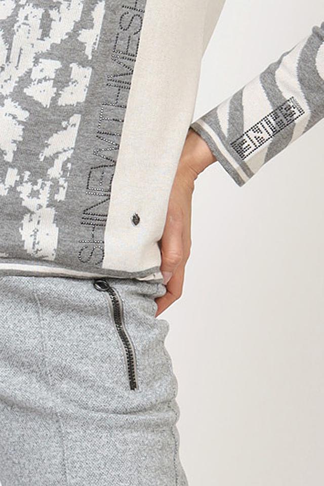 Этот стильный пуловер от Rabe collection выполнен в серой цветовой гамме с интересным принтом. Модель имеет удобный круглый вырез горловины и длинные рукава.