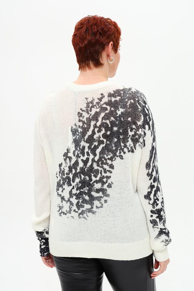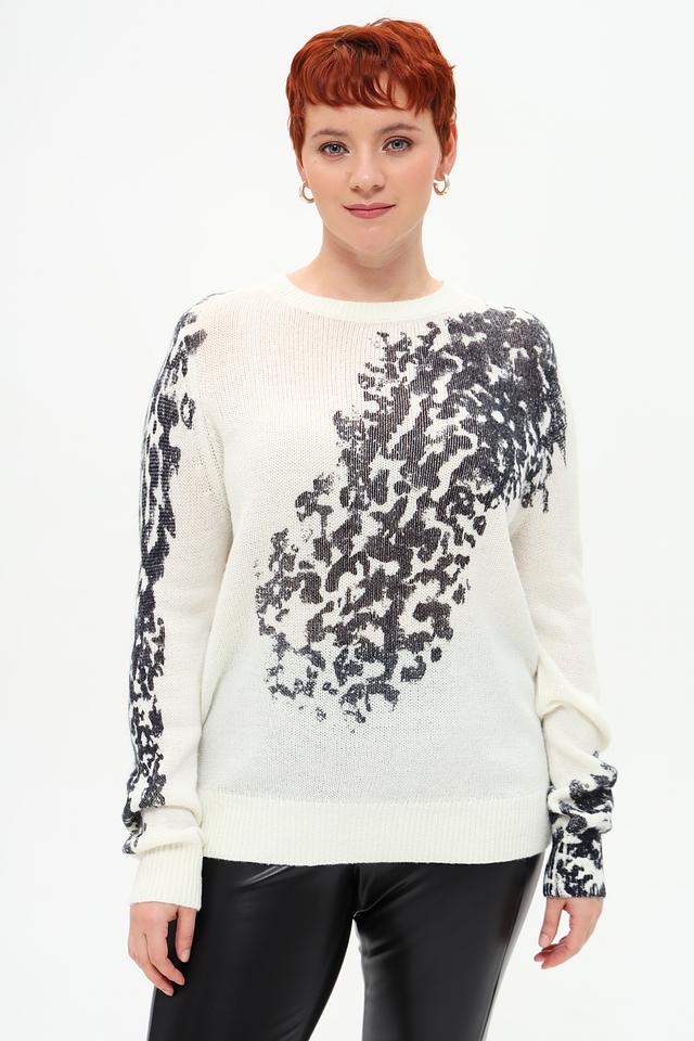 Этот пуловер от Taifun выполнен в светло-кремовом цвете и украшен эффектным принтом, имитирующим цветочный узор. Модель имеет круглый вырез горловины и классический крой, который подойдет для создания различных образов.