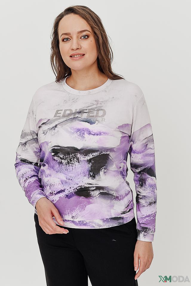 Женский пуловер Thomas Rabe лавандово-фиолетового цвета с оригинальным принтом "Edited" станет стильным дополнением к вашему гардеробу. Модель выполнена из мягкого и приятного к телу сочетания хлопка, модала и эластана, обеспечивая комфорт в носке. Состав: хлопок 47%, модал 47%, эластан 6%