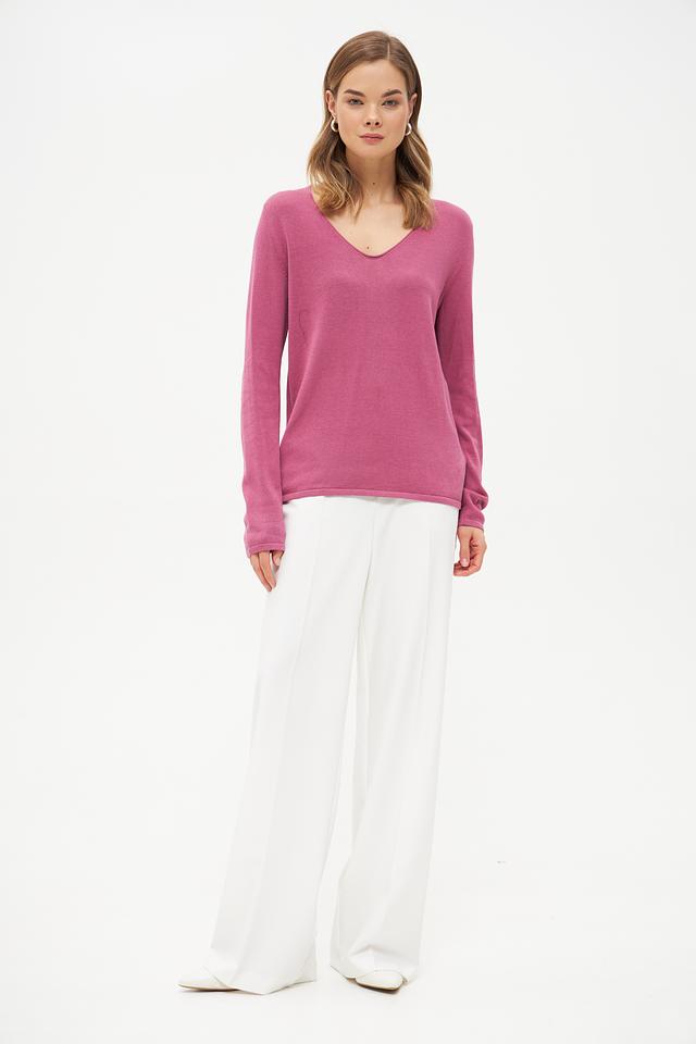 Пуловер имеет длинные рукава и прямой силуэт, который хорошо сочетается с брюками, юбками и джинсами. Он идеально подходит для создания как повседневных, так и более элегантных образов.