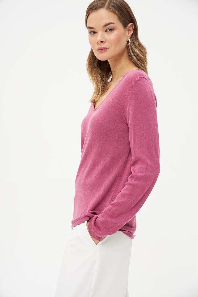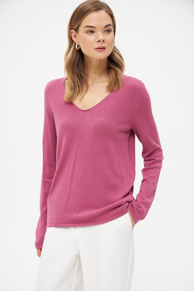 Пуловер Tom Tailor малиновый V-образный