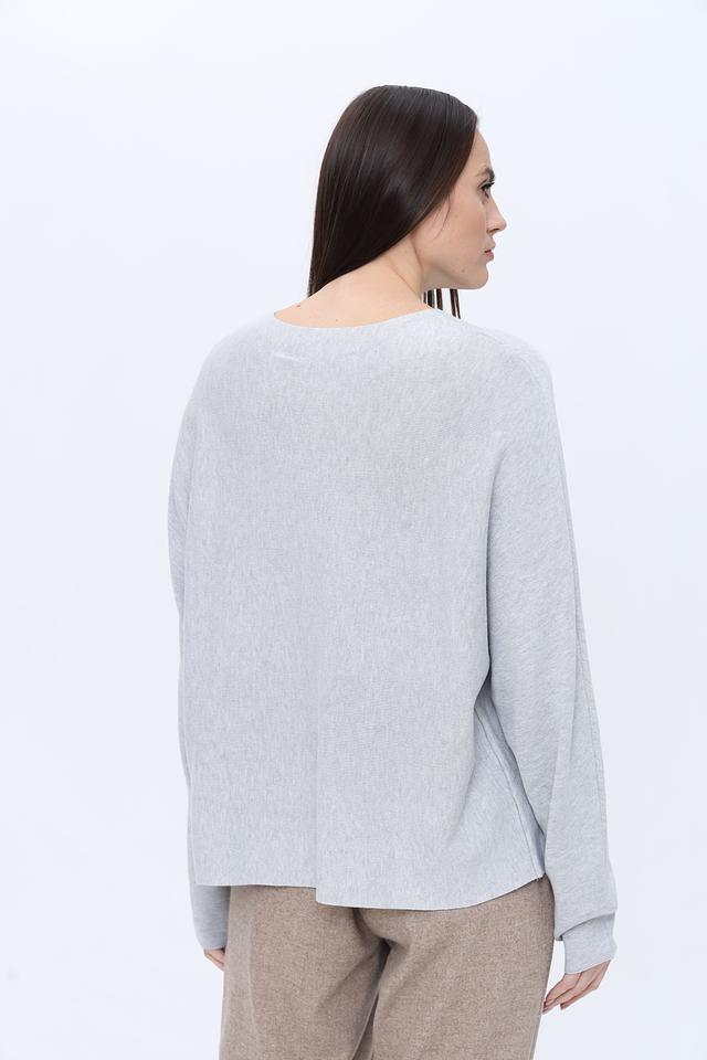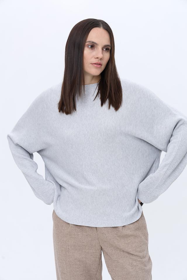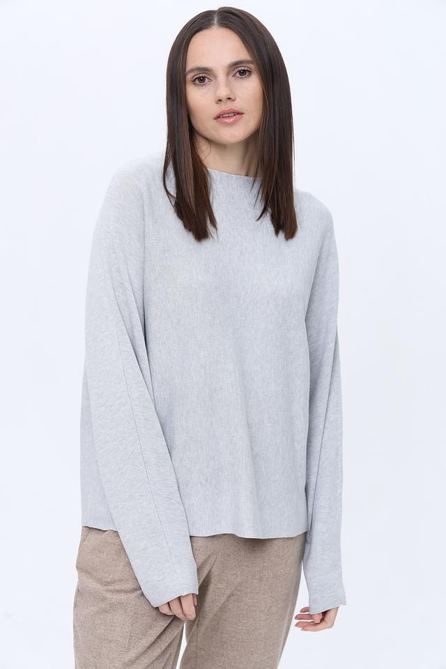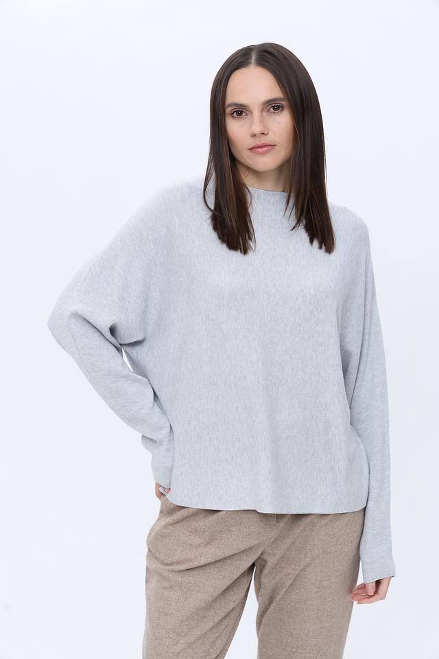 Модель имеет свободный крой, который не сковывает движения и обеспечивает комфорт в течение всего дня. Пуловер имеет круглый вырез горловины и длинные рукава.
