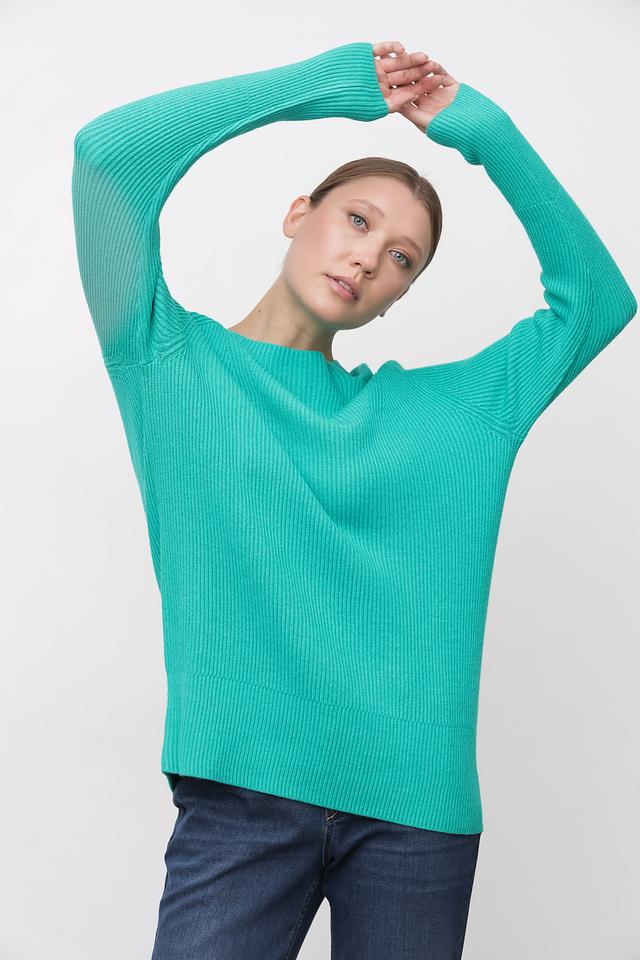 Бирюзовый пуловер Tuzzi из мягкого трикотажа с текстурной вязкой. Модель имеет свободный крой и круглый вырез горловины, что обеспечивает комфорт и универсальность в сочетании с другими элементами гардероба. Состав: вискоза 52%, полиэстер 28%, полиамид 20%