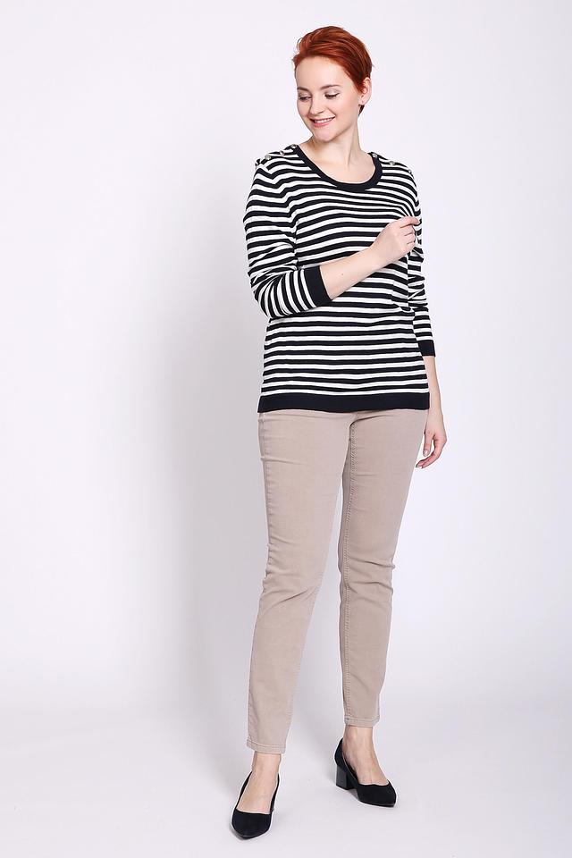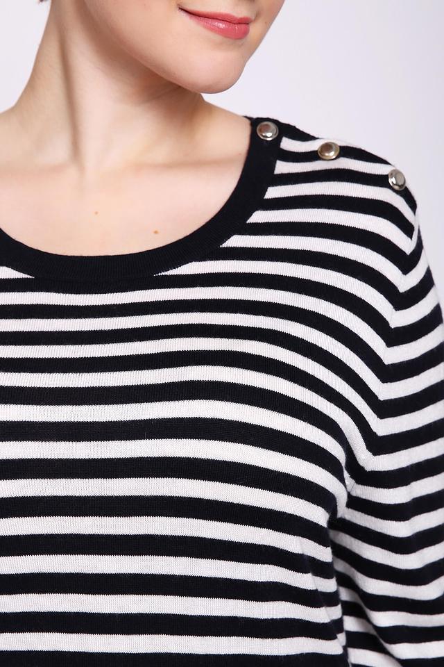 Женский пуловер Gerry Weber чёрно-белого цвета с полоской и декоративными пуговицами на плечах. Изготовлен из мягкой вискозы с добавлением полиамида и шерсти для комфорта и износостойкости. Состав: вискоза 55%, полиамид 40%, шерсть 5%