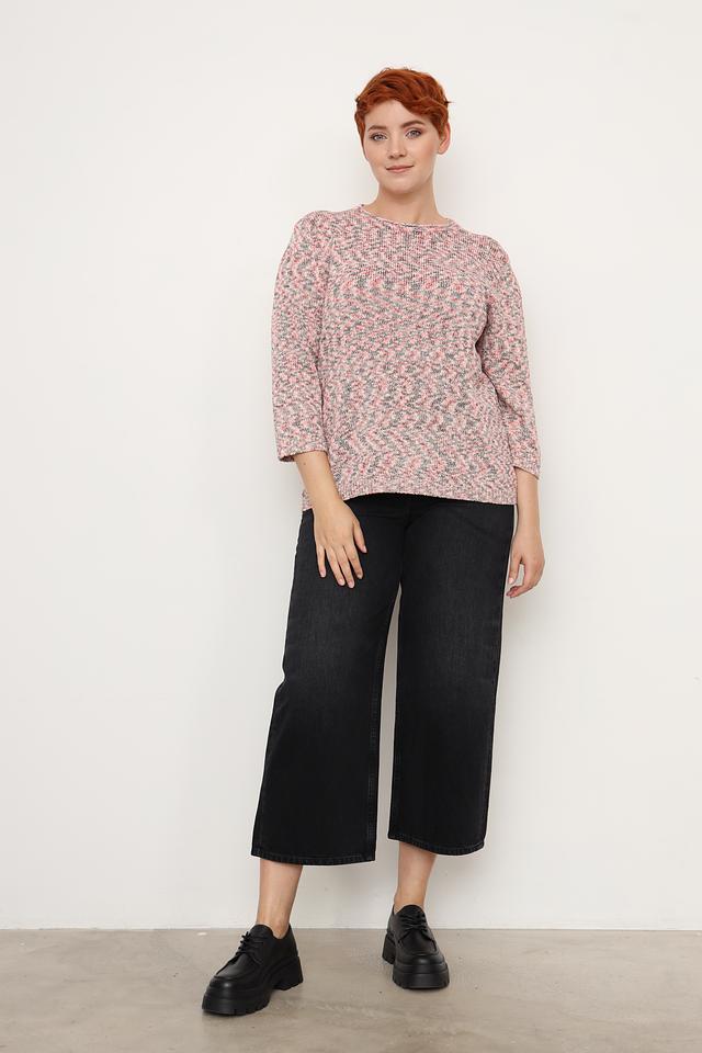 Пуловер имеет свободный крой, который не сковывает движений, и округлый вырез горловины. Рукав 3/4 делает его универсальным для любого времени года. Меланжевая текстура придает изделию особый шарм и позволяет легко сочетать его с различными элементами одежды.