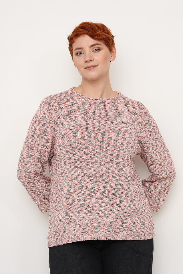 Женский пуловер Via Appia нежно-розового меланжевого цвета с рукавом 3/4 и округлым вырезом горловины. Изготовлен из мягкого хлопка с добавлением полиэстера для комфорта и износостойкости. Состав: хлопок 62%, полиэстер 38%