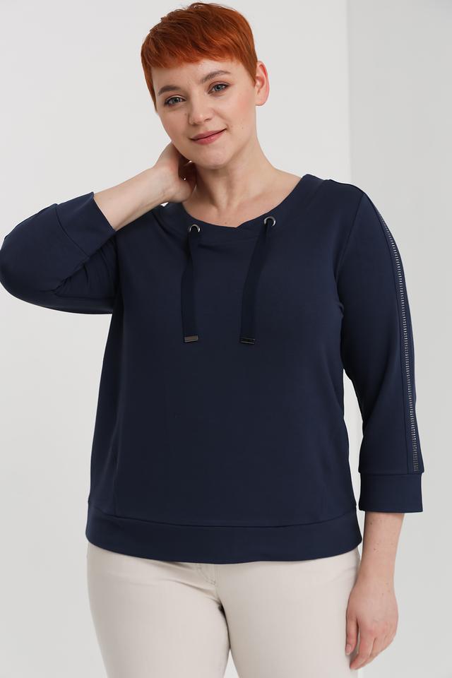 Синий пуловер Via Appia с рукавами 3/4 и декоративными шнурками на вырезе – стильное и комфортное решение для повседневного образа. Изготовлен из мягкой вискозы с добавлением полиэстера и эластана, обеспечивающих приятные тактильные ощущения и хорошую посадку. Состав: вискоза 59%, полиэстер 36%, эластан 5%