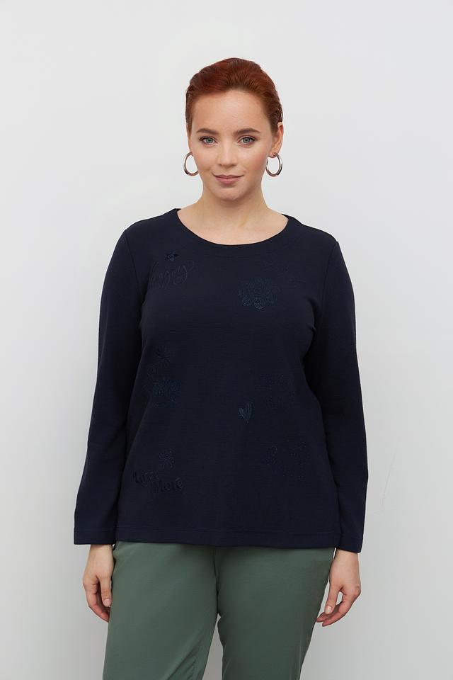 Тёмно-синий пуловер Via Appia из мягкого трикотажа с оригинальным узором. Изготовлен из полиэстера с добавлением вискозы и эластана для комфорта и хорошей посадки. Состав: полиэстер 69%, вискоза 29%, эластан 2%