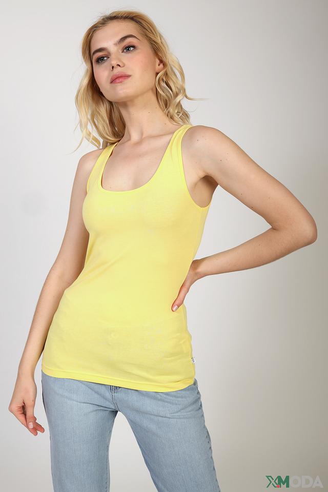 Универсальный жёлтый цвет топа позволит вам создавать яркие и стильные образы. Он отлично сочетается с различными оттенками и аксессуарами.