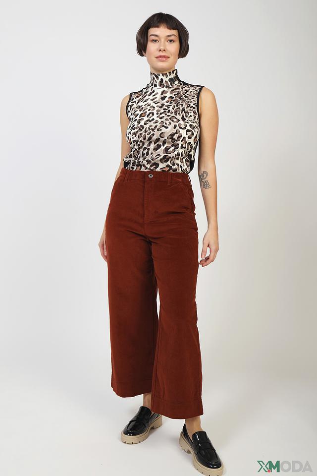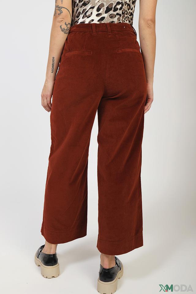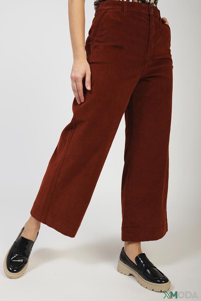 Брюки имеют высокую посадку и свободный крой, что делает их универсальным элементом гардероба. Они отлично сочетаются с различными видами верха, от базовых футболок до элегантных блузок. Классический терракотовый цвет придаёт образу изысканность и актуальность.