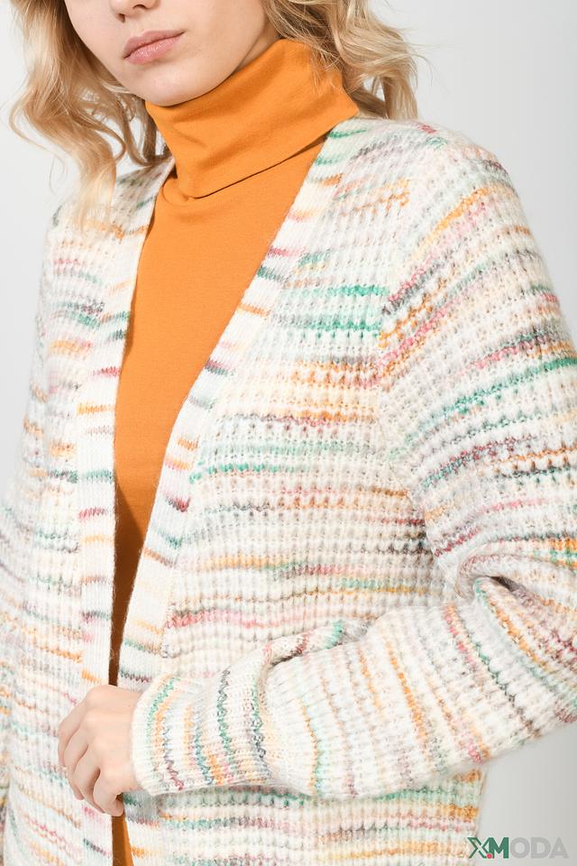 Этот жакет от бренда QS станет отличным дополнением к вашему гардеробу. Модель выполнена в приятной цветовой гамме – меланж, сочетающий в себе различные оттенки белого, бежевого, оранжевого и зеленого.