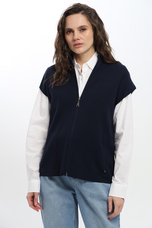 Жилет изготовлен из сочетания хлопка и полиакрила, что обеспечивает комфорт и практичность в носке. Застёжка на молнии позволяет легко регулировать степень облегания и создавать разные стили.