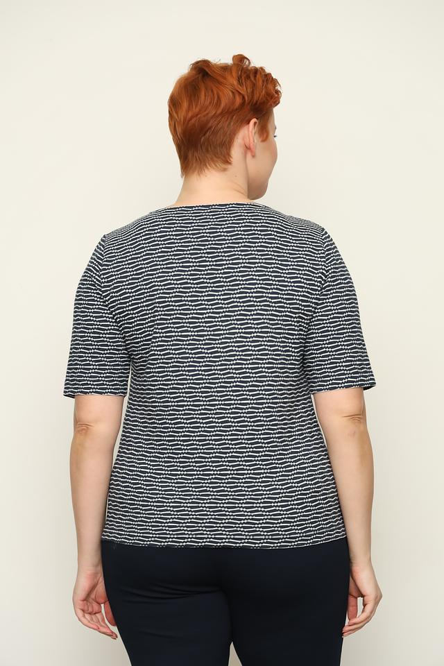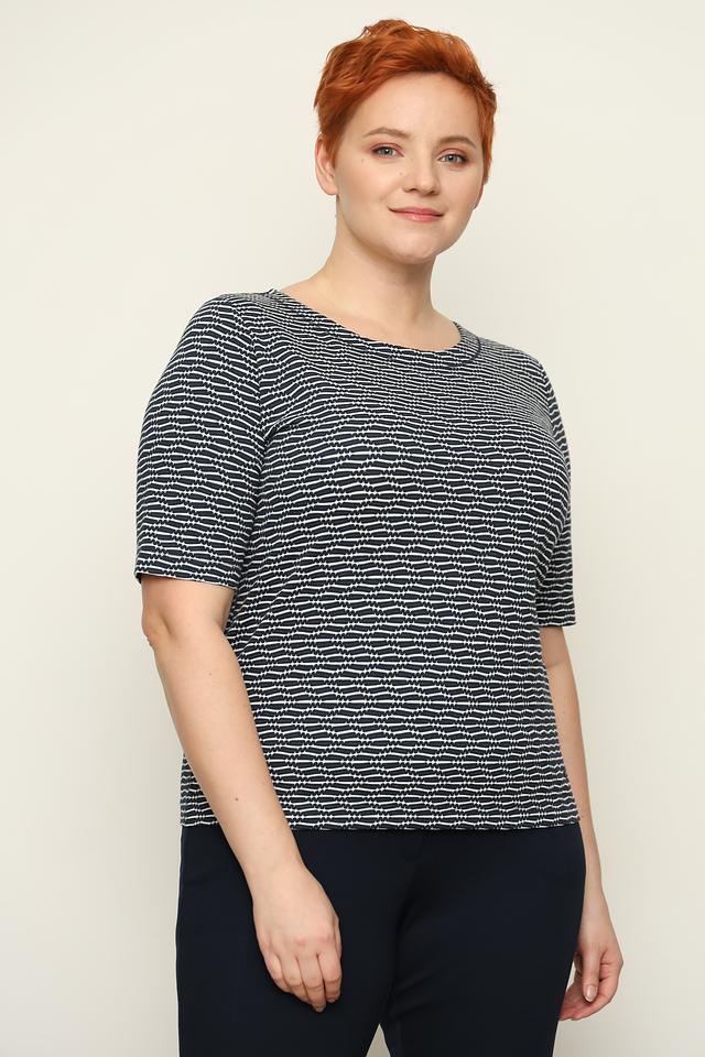 Эта стильная блуза от Rabe collection выполнена в темно-синем цвете с изысканным полосатым принтом. Модель имеет прямой крой и короткие рукава, что делает ее универсальной для различных образов.