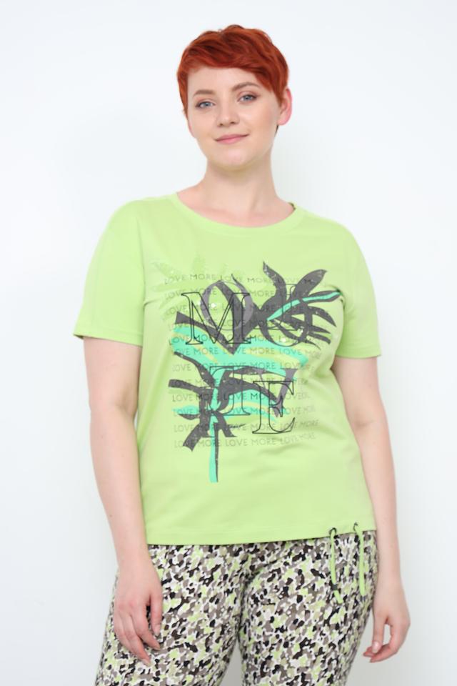Женская футболка Rabe collection лаймового цвета с ярким тропическим принтом. Модель выполнена из мягкого и приятного к телу трикотажа, обеспечивающего комфорт в течение дня. Идеальный выбор для создания стильного и непринужденного образа. Состав: хлопок 60%, вискоза 35%, эластан 5%