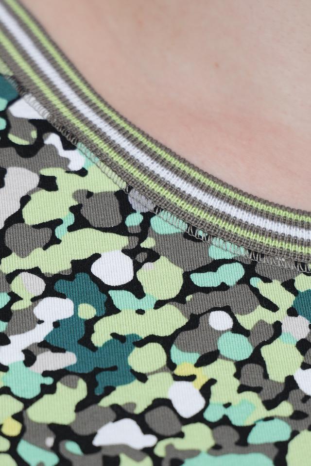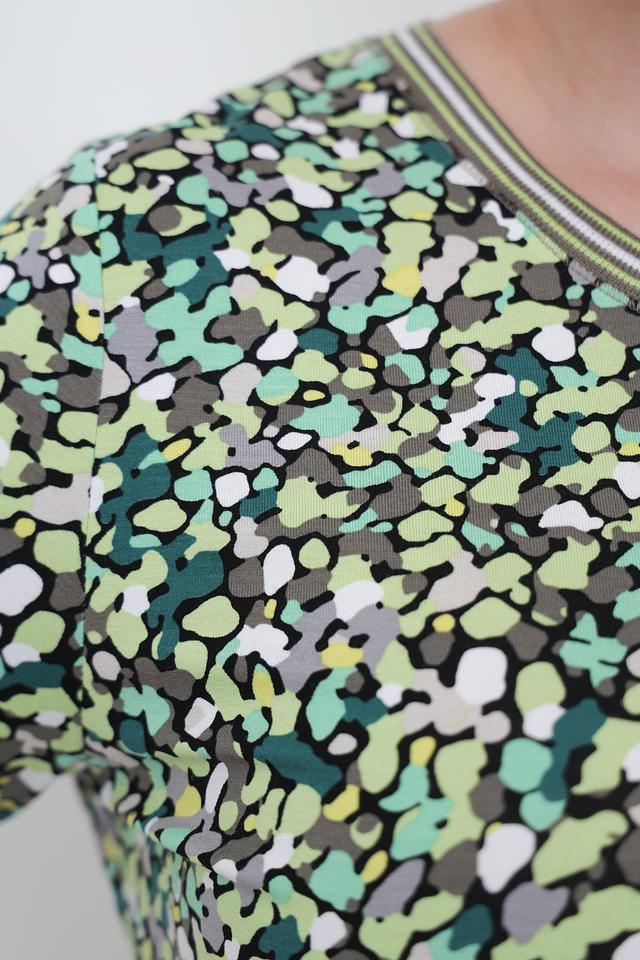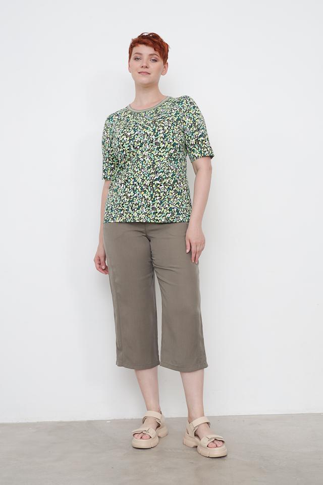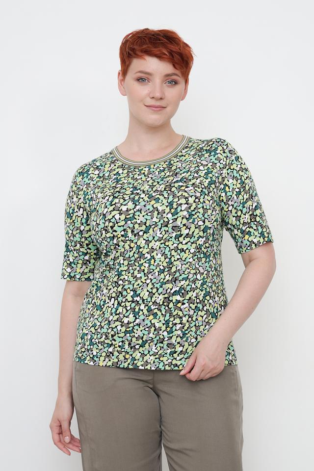 Женская футболка Rabe collection зеленого цвета с ярким цветочным принтом. Изготовлена из мягкой вискозы с добавлением эластана для комфорта и хорошей посадки. Идеальный выбор для создания повседневного образа. Состав: вискоза 92%, эластан 8%