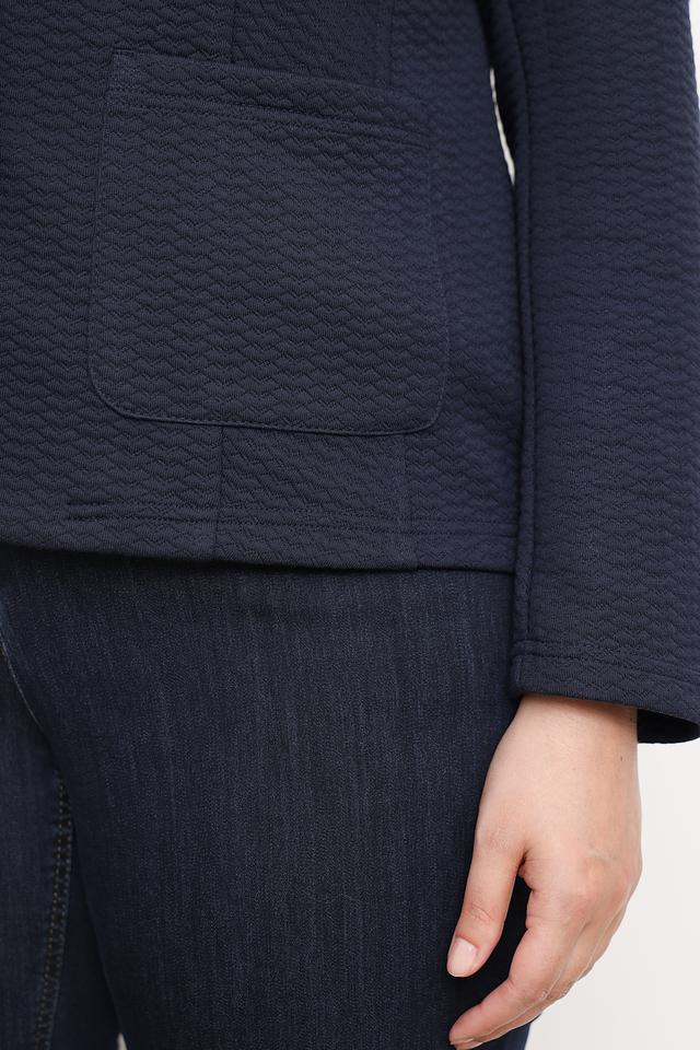 Жакет Rabe collection темно-синего цвета – стильная и удобная модель с классическим кроем. Жакет выполнен из текстурированной ткани, что придает ему особый шарм. Идеально дополнит ваш повседневный или деловой гардероб. Состав: полиэстер 98%, эластан 2%