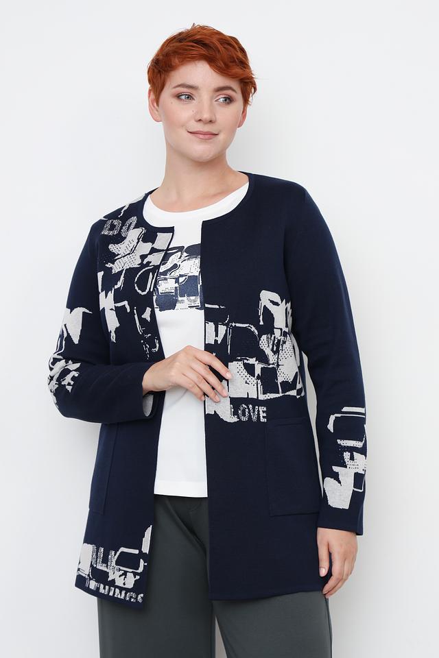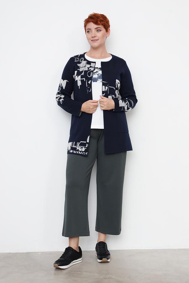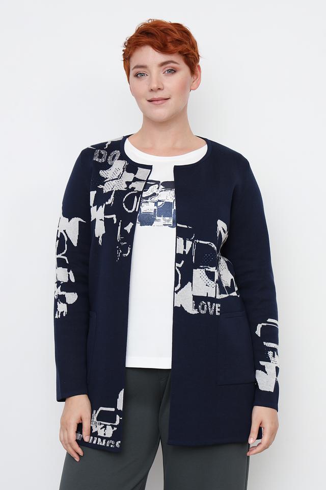 Жакет Rabe collection темно-синего цвета с оригинальным принтом – стильное и комфортное решение для создания повседневных образов. Модель выполнена из мягкого трикотажа, что обеспечивает удобную посадку и свободу движений. Состав: хлопок 42%, полиакрил 42%, полиэстер 16%