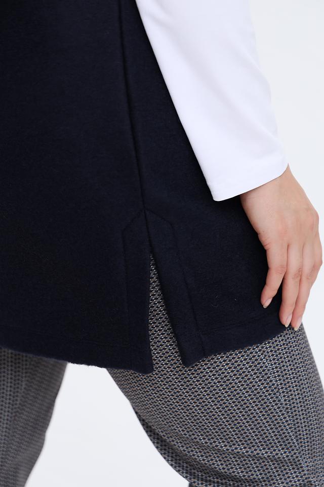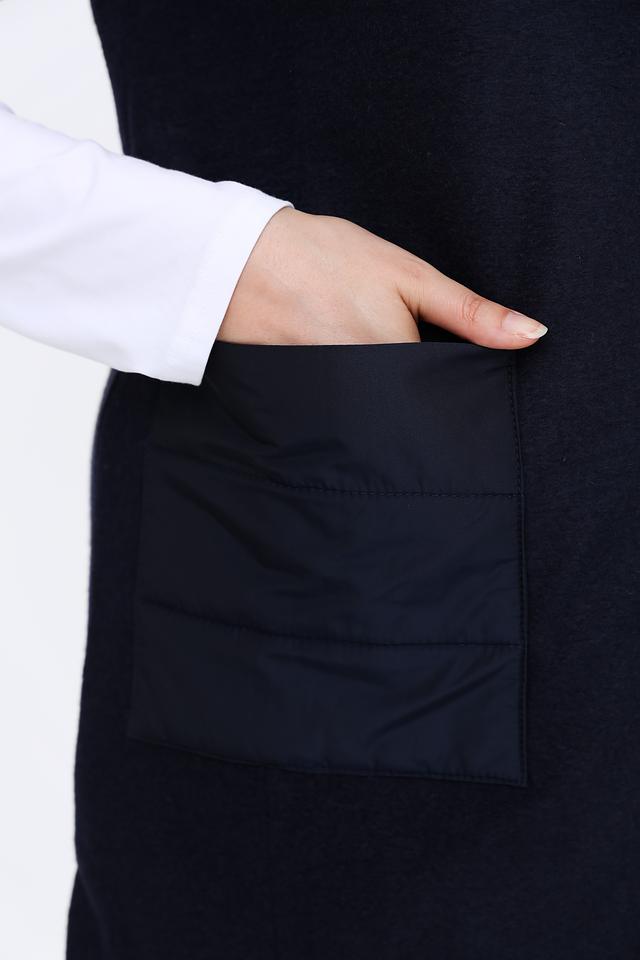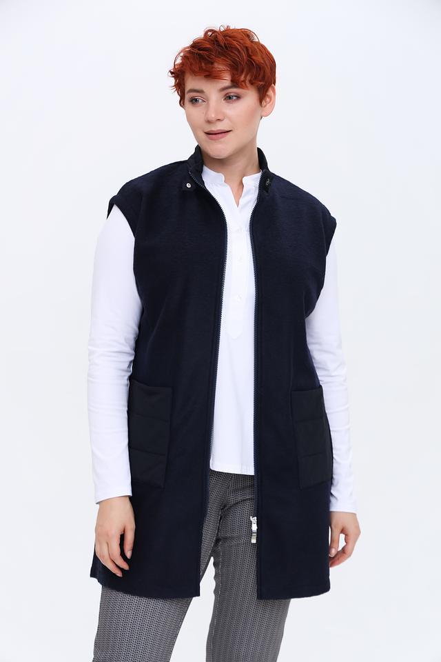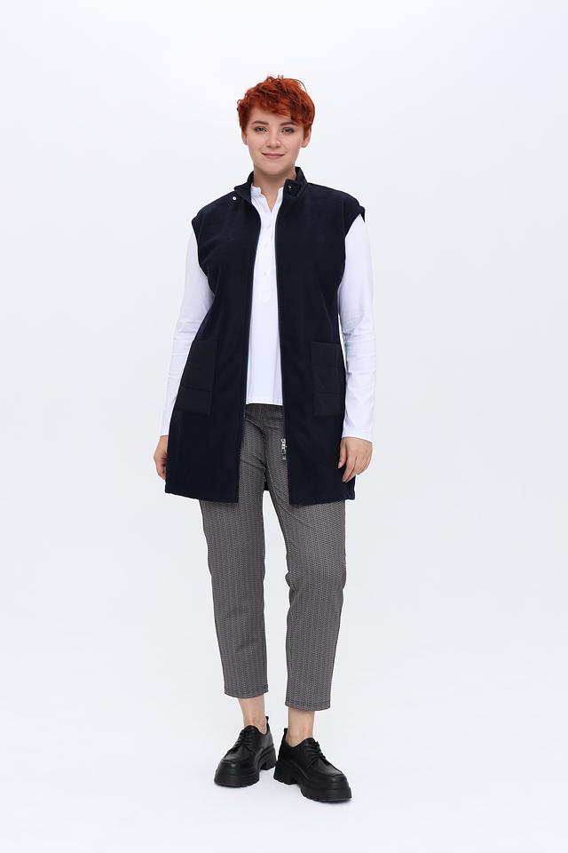Тёмно-синий жилет от Rabe collection – это стильное и практичное решение для создания многослойных образов. Удлиненный крой и застежка-молния обеспечивают комфорт и свободу движений, а накладные карманы добавляют функциональности. Состав: полиэстер 70%, шерсть 30%