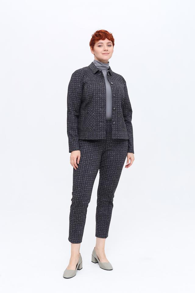 Этот жакет от Rabe collection – идеальный выбор для создания элегантного и современного образа. Жакет выполнен в сером цвете с оригинальным геометрическим рисунком в виде клетки, который придает ему особый шарм.