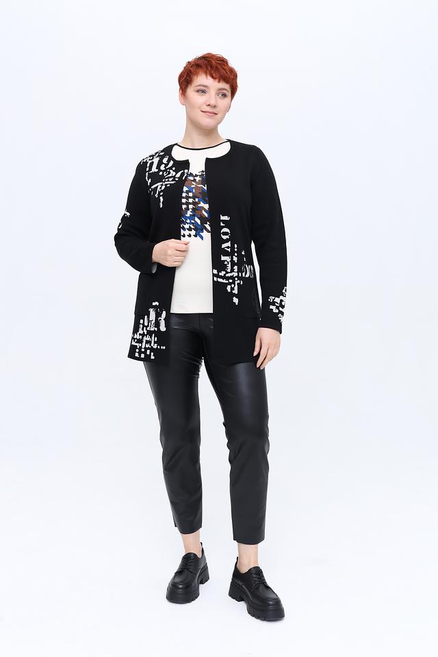 Чёрный жакет от Rabe collection – это стильная и удобная модель с оригинальным принтом. Жакет имеет свободный крой и выполнен из мягкого трикотажа, что обеспечивает комфорт в носке. Идеально дополнит повседневный образ. Состав: хлопок 42%, полиакрил 42%, полиэстер 16%