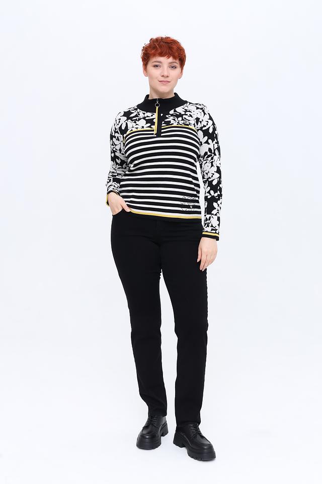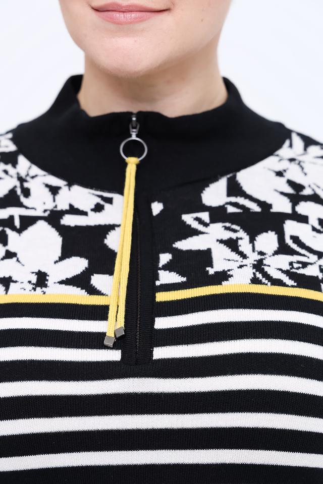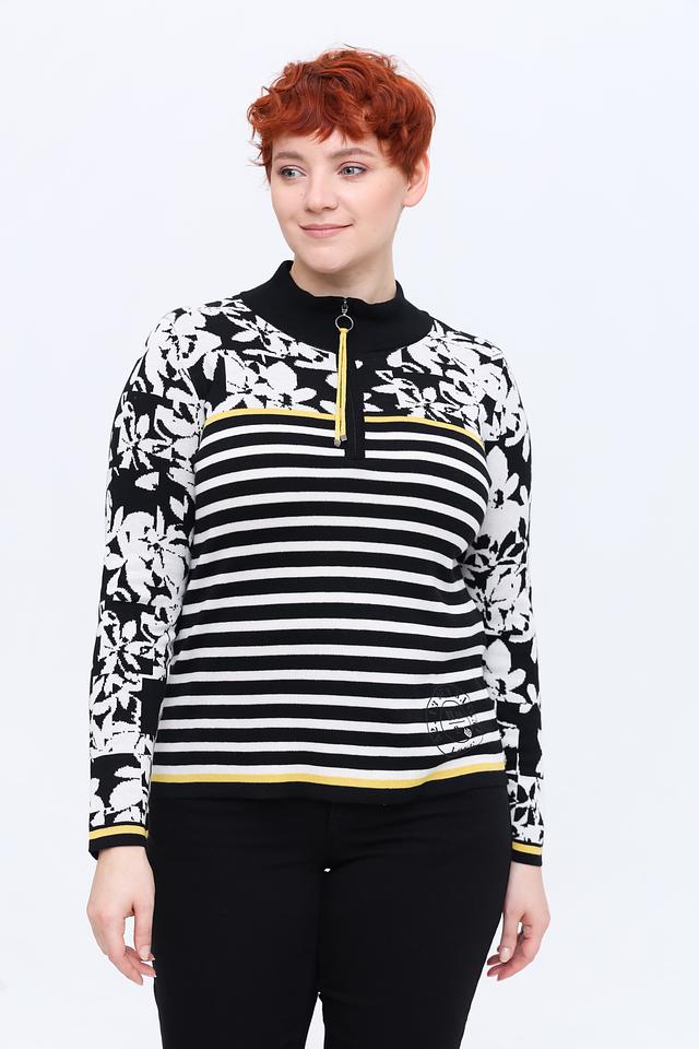 Женский пуловер Rabe collection черно-белого цвета с цветочным принтом и полосками, застежкой на молнии. Модель выполнена из мягкого и приятного к телу сочетания хлопка и полиакрила. Состав: хлопок 50%, полиакрил 50%