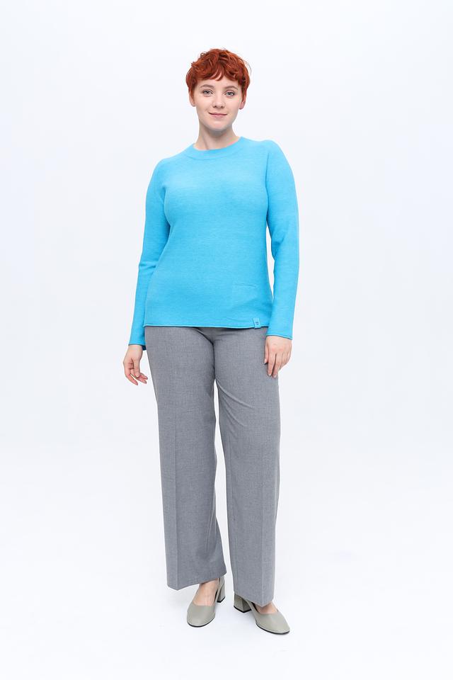 Модель имеет классический крой с круглым вырезом горловины и длинными рукавами. Пуловер имеет небольшую нагрудную вставку. Благодаря своему универсальному дизайну, этот пуловер легко сочетается с различными предметами одежды – от джинсов и брюк до юбок и платьев.